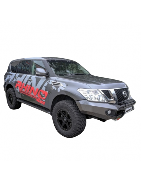 Bumper Delantero Rhino 4x4 Evo 3d Para N Patrol Y62 Series 4 Con Sensor, Lavafaros Y Radar Negro Epoxi Para Uso Off Road